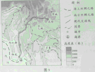(l)说明古代“南方丝绸之路”基本沿山间谷地分布的自然和人文原因。请各答一条。(4分)
