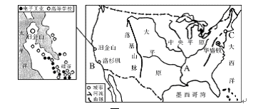 (3)目前,美国经济增长主要得益于高新技术产业的发展。位于____________(城市)东南的硅谷,成为美国高新技术产业中心。请你写出一种高新技术产品:____________。
