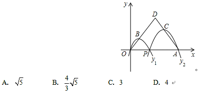 如图,已知点A(4,0),O为坐标原点,P是线段OA上任意一点(不含端点O,A),过P、O两点的二次函数y1和过P、A两点的二次函数y2的图象开口均向下,它们的顶点分别为B、C,射线OB与AC相交于点D.当OD=AD=3时,这两个二次函数的最大值之和等于【 】