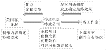 2016年1月上映的《星球大战7》获得北美票房冠军,电影以逼真的特效给观众带来一场视听盛宴。下图为电影特效制作流程示意图,读图完成21-22题。