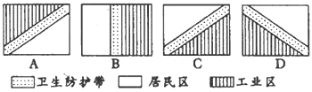下图是我国华北某城市各功能区设置示意图,从环保角度考虑,其中合理的是( )