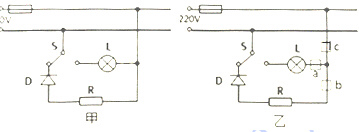小伟一个科学迷,在课余时间他利用一个规格为“2.2V 0.01A”的发光二极管设计了如图甲所示的电路.晚间关闭照明灯L后,利用二极管D发出的光指示开关所在的位置.S为单刀双掷开关、R为限流电阻.