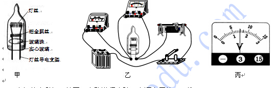 他请教了科技人员,得到以下信息:小彩灯规格是“2.5V 0.25A”,小彩灯的构造如图甲所示,细金属丝表面涂有绝缘物质,在正常(低压)时不导通,若加上较高电压(如220 伏)时,细金属丝表面的绝缘层会被击穿。