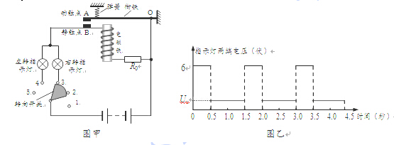 (2)当转向开关与触点“2和3”接通时,右转指示灯两端实际电压变化规律如图乙所示。已