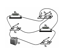 A、B之间连接其中一个),R1和R2是发热电阻,