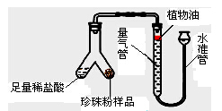 (2)为了比较真假珍珠粉中碳酸钙的含量,共进行了三次实验,每次各取5g真假珍珠粉,分别置于下列实验装置中(稀盐酸足量且真假珍珠粉中只有碳酸钙与稀盐酸会反应生成气体),测定生成气体体积数据如下表: