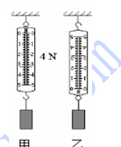 将一弹簧测力计照图甲使用,测力计的读数为4N;若把弹簧测力计倒置,像图乙这样使用,两种情况下测力计下面挂的是同一物体,则图乙中测力计的读数应是( )