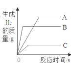 将质量相等的A、B、C三种金属,同时分别放入三份溶质质量分数相同且足量的稀盐酸中,反应生成H2的质量与反应时间的关系如图所示。根据图中所提供的信息,得出的结论正确的是(已知:A,B,C在生成物中均为+2价)( ) A.放出H2的质量是A>B>C B.金属活动性顺序A>B>C C.相对原子质量是A>B>C D.反应速率最大的是A