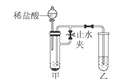 某化学小组在课外活动时做了一个实验,在甲试管中装入某固体物质,乙试管装入某溶液,按如图所示组装好仪器(图中铁架台等仪器已略去)。打开止水夹,同时通过分液漏斗加入足量稀盐酸,看到乙试管溶液中有气泡冒出,一段时间后,再关闭止水夹,发现乙中溶液变白色浑浊。符合此实验现象的一组试剂是