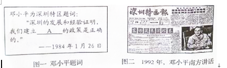 (3)阅读材料三,请将图一A处空白补充完整.图二邓小平南方讲话的意义是什么?结合所学知识,请你用一句话简要评价邓小平在改革开放中的地位.